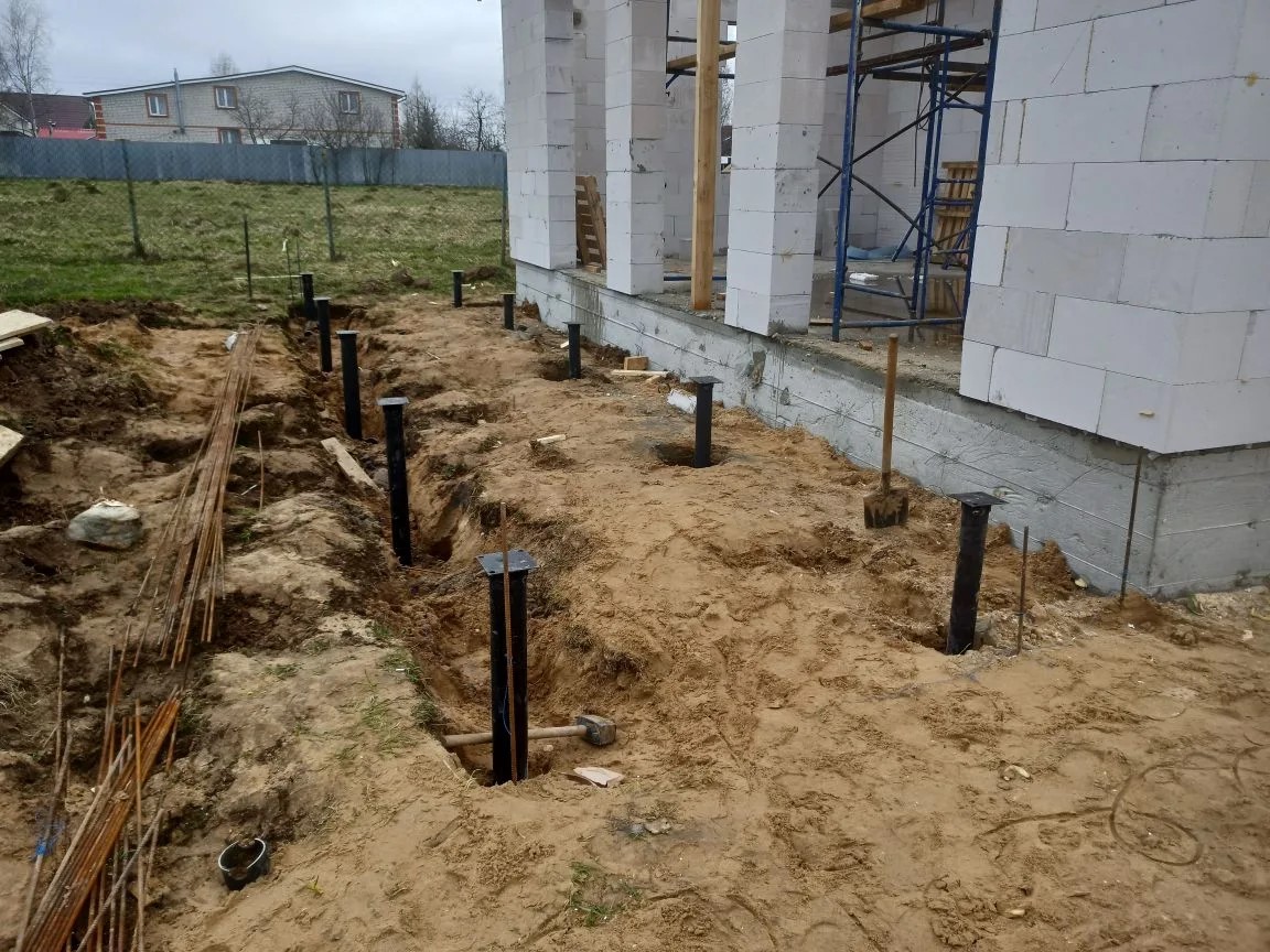 Строительство загородного дома из газобетона требует особого внимания к деталям, особенно когда речь идет о дополнительных конструкциях, таких как террасы или входные группы. Недавно специалисты нашей компании Сваекрутов завершили очередной проект, обеспечив надежное основание для входной группы загородного коттеджа. Заказчик обратился к нам с задачей создать прочный фундамент, который станет устойчивой опорой для будущей пристройки и будет идеально сочетаться с основным строением.